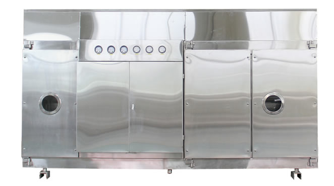 本機配有超聲波清洗網帶裝置(訂貨時定),並留有(yǒu)溫度檢測(cè)口、塵埃粒子檢測口(kǒu)。本機可聯(lián)線或單機使用。