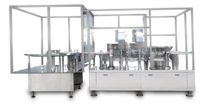 本機符合“cGMP”要求(qiú),適用於西(xī)林瓶的粉(fěn)劑分裝和上(shàng)塞,也可以用於其它類似的粉劑分裝上(shàng)塞。是粉針生產線(xiàn)中計量分裝主機。