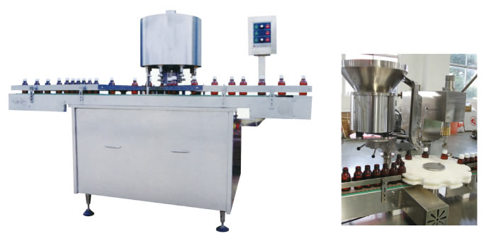 該機符合“GMP”要求,廣泛用於製藥工業,能對塑料瓶(píng)、玻璃瓶自動完成送瓶、上蓋、旋蓋等動作。體(tǐ)積小,效率高(gāo),旋蓋質量高(gāo)。主機(jī)采用日本三菱變頻器調(diào)速,行星式旋轉上蓋,可連續對輸送過來的瓶子經氣動裝置夾緊後進(jìn)行旋蓋。整機噪聲小,運轉平穩,旋(xuán)蓋不鬆動。調換少數零(líng)件可實(shí)現多規格玻璃瓶或塑料瓶旋蓋生產。本機既(jì)可(kě)單機使用,又可聯入生產(chǎn)線。