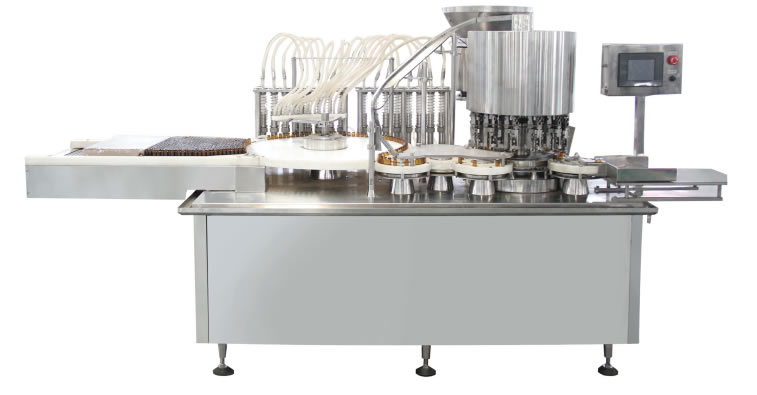 该线(xiàn)采用触摸屏动态显示操作,PLC程(chéng)序控制;主机(jī)变频(pín)调速。瓶子先经超声波粗洗,后由特制瓶斗传输,经过九组工位内外压力冲洗后,进入高温隧道烘箱内灭菌、然后转入灌封机,由渐进式拦边网带进瓶、陶瓷泵跟踪灌装(zhuāng)、柔性单刀或(huò)三刀滚压跟踪轧盖、凸轮式收瓶(píng)装置等先进工序,自动化程(chéng)度高。是口服液高产量新型的理(lǐ)想设备。
